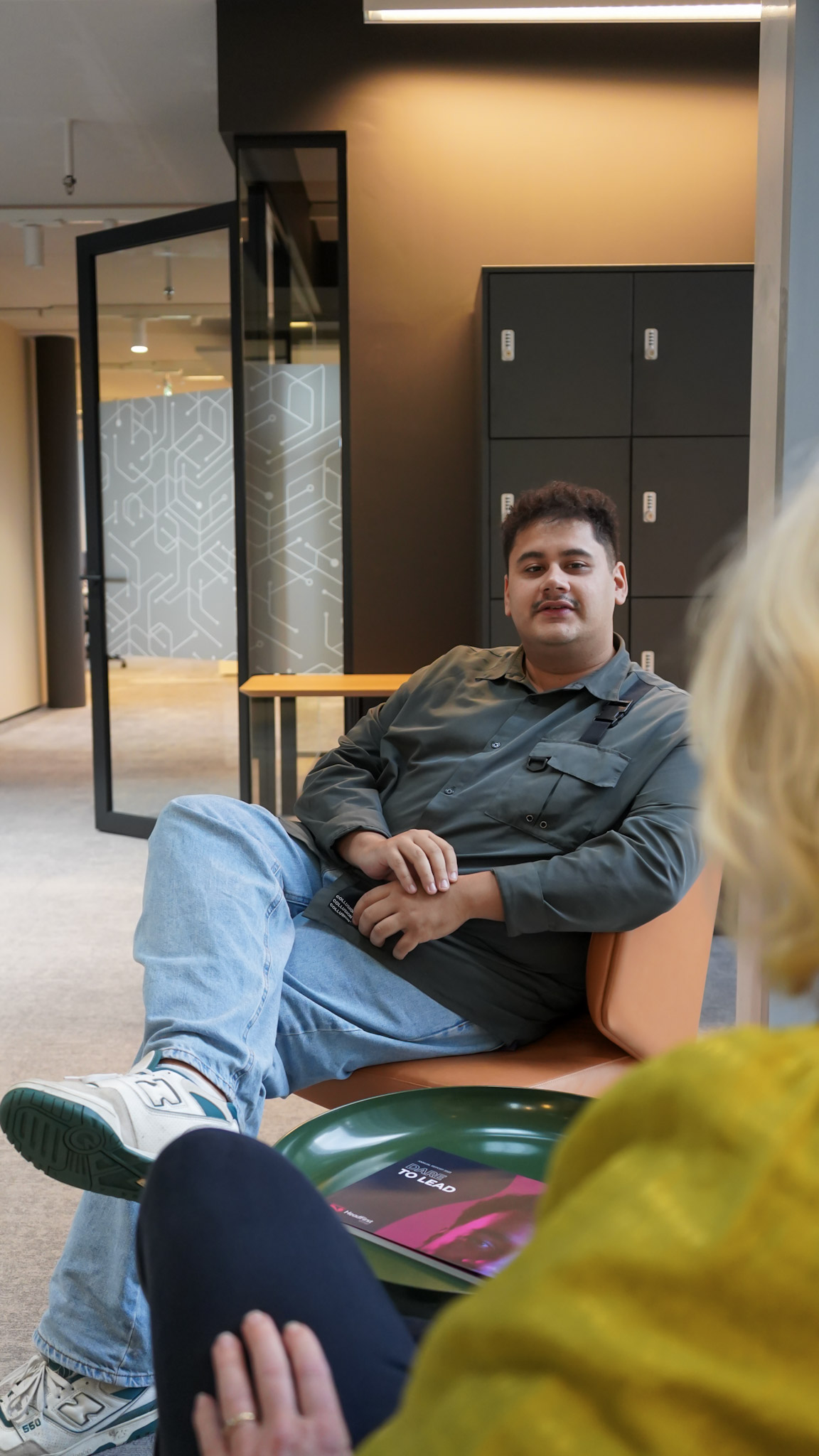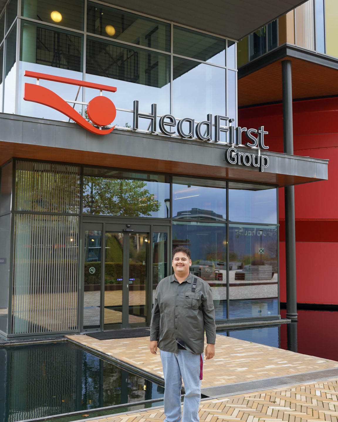 Vijf maanden geleden liep Brandon het pand van HeadFirst Group binnen. Een nieuwe omgeving met gezichten en afdelingen die hij nog niet kende. “Ik kwam uit een kantoor van honderd vierkante meter,” lacht hij. “En ineens stond ik in een giga-gebouw met honderden collega’s. Dat was even schakelen.” De eerste indruk? Meer dan goed. “Het voelde meteen alsof ik in een warm bad terechtkwam.” Inmiddels voelt hij zich helemaal thuis.